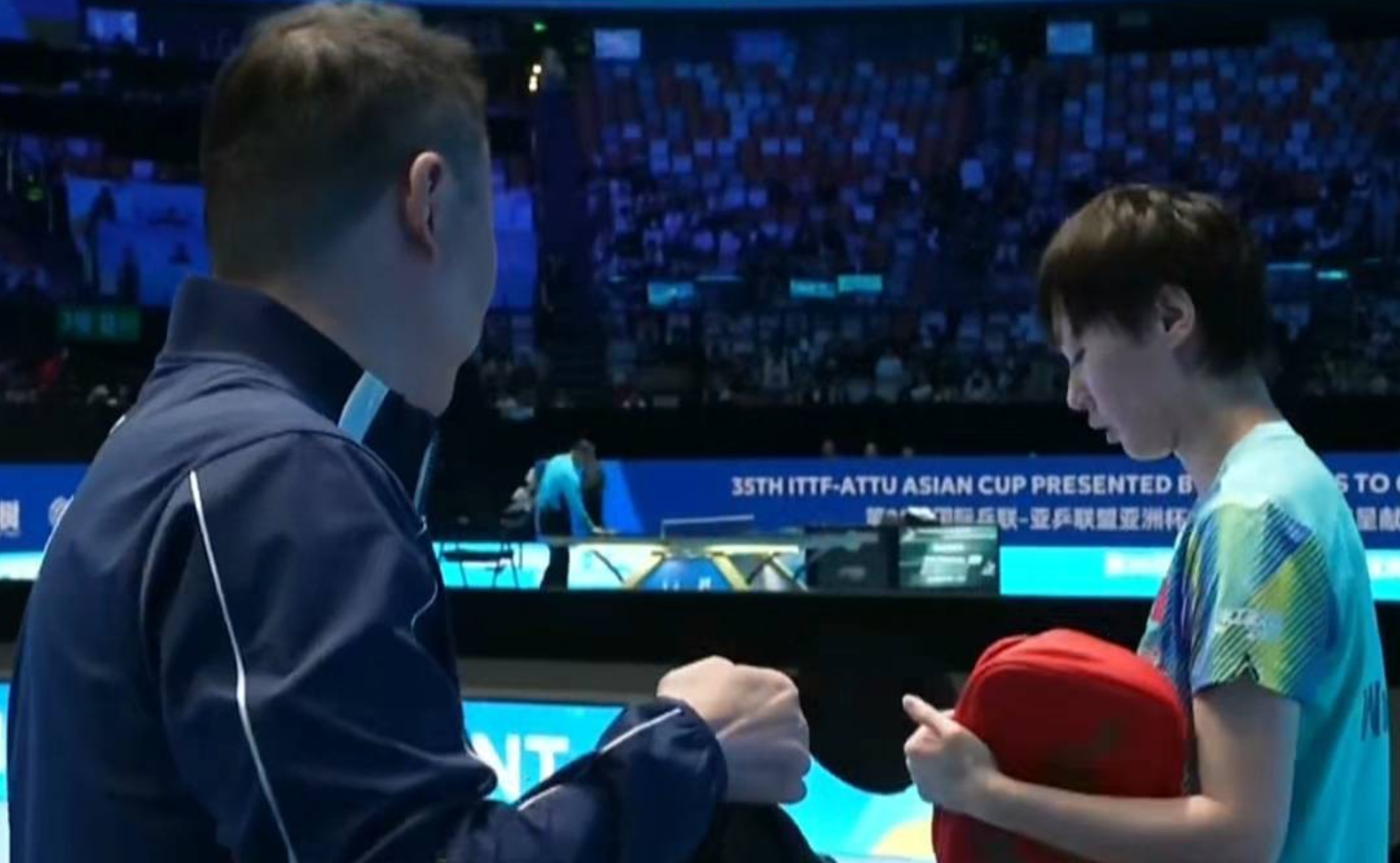 第三局王曼昱还是轻松压制,开局就轰出了5-2领先,打停对手。暂停回来,王曼昱还是打得非常轻松,11-2横扫对手。